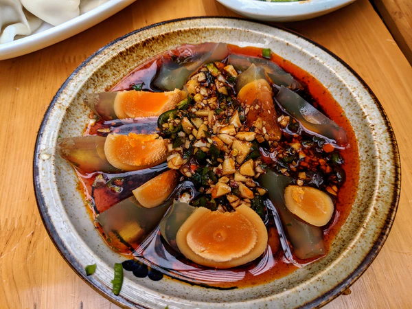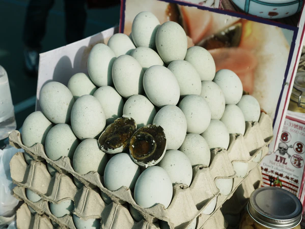 Столетние яйца, также известные как щёлочные или консервированные яйца, — это блюдо китайской кухни, приготовляемое путём консервирования утиных, куриных или перепелиных яиц в смеси глины, золы, соли, негашёной извести и рисовой шелухи в течение нескольких недель или месяцев в зависимости от способа приготовления[1].
