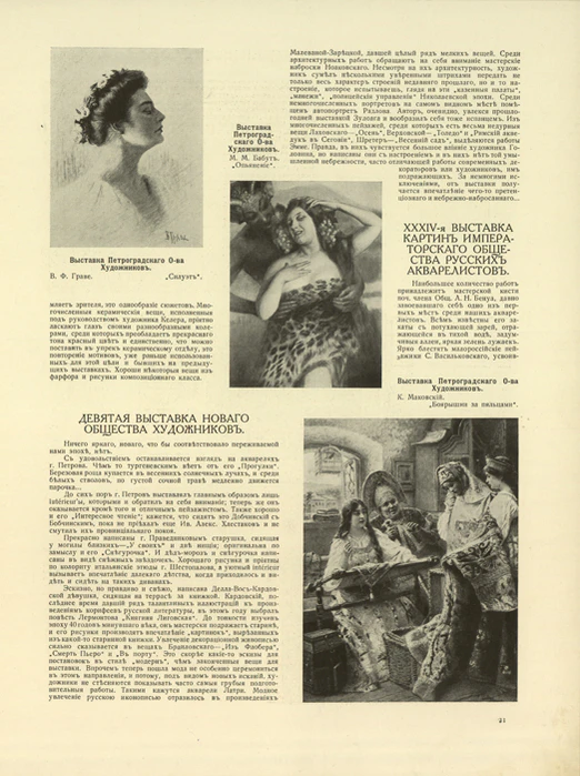 - Русские художники-декораторы (А. Бенуа, С. Судейкин, Л. Бакст) // № 57, 1916.