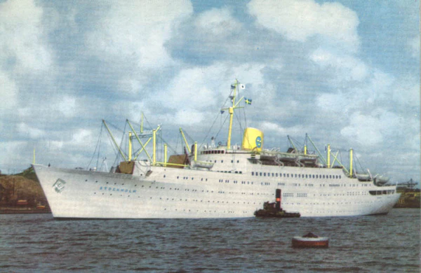 В то же время из Нью-Йорка собирался отчалить шведский лайнер «Стокгольм». Лайнер принадлежал компании «Swedish American Line» и был введён в эксплуатацию в 1948 году. Он был самым крупным из шведских судов, но, вместе с тем, самым маленьким среди пассажирских лайнеров, курсировавших через Северную Атлантику. Судно было на четверть короче «Андреа Дориа» и на 5 узлов медленнее (17—18 узлов). В 1953 году «Swedish American Line» увеличила размеры надстройки «Стокгольма», в результате чего число мест для пассажиров было доведено до 548[4]. Но судно сохранило свои обтекаемые очертания гоночной яхты — у него был удлинён бак, остро срезанный нос эсминца (усиленный для плавания во льдах) и изящно закругленная корма крейсера. Длина его составляла 160 метров, ширина — 21 метр. Судно имело 7 палуб и закрытый бассейн для плавания.