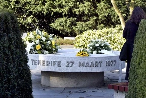 В память жертв катастрофы было воздвигнуто три официальных мемориала: для погибших с рейса KL4805 — на кладбище Вестгарде (нидерл. Westgaarde) в Амстердаме (данный мемориал являлся собственностью авиакомпании KLM до 2017 года), для погибших с рейса PA1736 — в Уэстминстере (Калифорния, США), и общий мемориал на Тенерифе, который был открыт 27 марта 2007 года, к 30-й годовщине катастрофы. Мемориал, созданный нидерландским скульптором Руди ван де Винтом (нидерл. Rudi van de Wint), получил название «Лестница в небеса» (англ. Stairway To Heaven) и представляет собой направленную вверх и резко обрывающуюся винтовую лестницу, символизирующую внезапно прерванные жизни находившихся на борту обоих лайнеров[21].