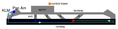 - Экипаж рейса PA1736 проехал указанную диспетчером рулёжную дорожку С3, так как этот манёвр требовал поворота самолёта более чем на 90°.