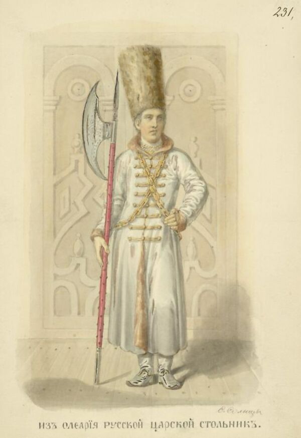 При выездах царя один стольник был кучером, другие стольники стояли на ухабах саней (ухабные), или за каретами и повозками.