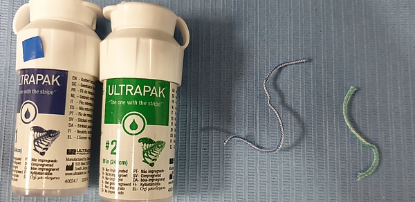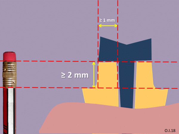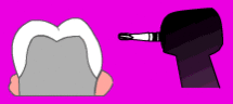 - Врач препарирует зубы по методике, соответствующей выбранной конструкции (виду коронки). Устанавливает ретракционные нити в области десны для более чёткого отображения границ препарирования на оттиске. Делает оттиск. Изготавливает и фиксирует временные коронки на временный цемент.
