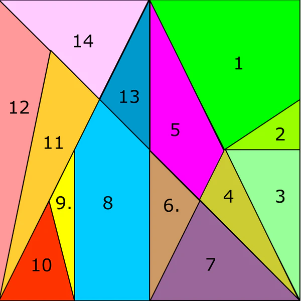 Из этого следовало, что трактат был посвящён малоинтересному рассмотрению бесконечного множества таких фигур[4]. После прочтения рукописи стало понятно, что предметом рассмотрения Архимеда в его трактате было определение количества различных комбинаций, с помощью которых можно было бы собрать квадрат.