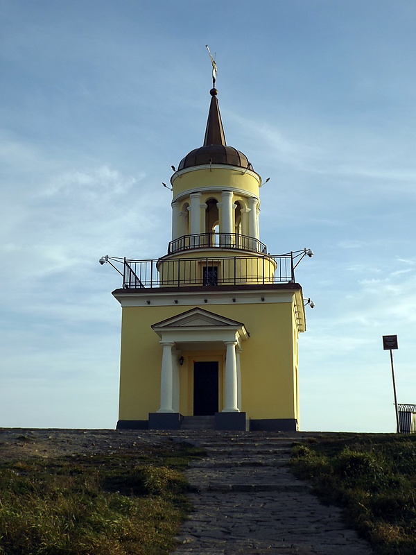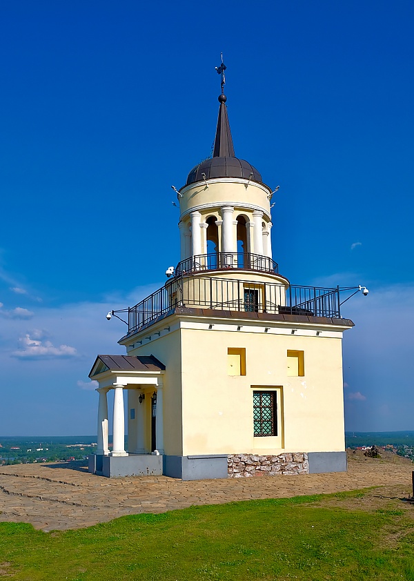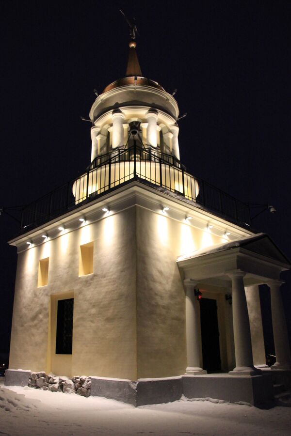 Первоначально на вершине Лисьегорской сторожевой башни была деревянная изба. Сторожевая башня из дерева на вершине Лисьей горы появилась ещё в XVIII в., автора того проекта башни история не сохранила, а в начале XIX в. она была заменена каменной. По одной из неправдоподобных версий она предназначалась для защиты от кочевников, но более реалистична версия о её назначении в качестве пожарной каланчи. Существуют также версии, что она использовалась в качестве обсерватории и была даже чем-то вроде маяка. В 1818 году деревянная башня была перестроена в каменную по проекту неизвестного автора[1], а в 1868 году была реконструирована по проекту А. З. Комарова[2]. На чугунной плите, скрепляющей один из углов башни, видна выбитая дата постройки — 1818 год. В таком виде башня служила пожарной каланчой: при пожаре в башне били в бронзовый колокол и вывешивали красные фонари из больших кожаных пузырей. В середине 1830-х годов для наблюдения кометы Галлея (была видна с Земли в 1835—1836 годах) рядом со сторожевой башней возвели обсерваторию, представлявшую собой павильон на вращающейся платформе. Ныне от неё сохранилась только замурованная в камень массивная чугунная тумба. С 3 октября 1943 года сторожевая башня по распоряжению городских властей получила статус памятника архитектуры, подлежащего сохранению и периодическому ремонту без права перестройки. В годы советской власти башня служила и пунктом метеонаблюдений, и общественной обсерваторией, а в 1956 году там был оборудован телевизионный ретранслятор[3][1].