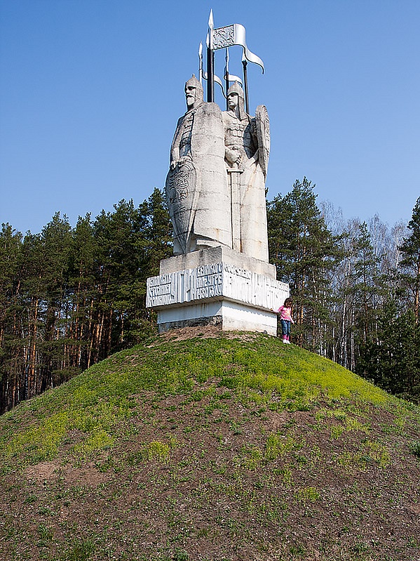 Стела «Противостояние татаро-монгольскому игу» находится напротив села Знаменка Угранского района Смоленской области, в то же время местонахождение объекта культурного наследия относится к Великопольевскому сельскому поселению[31].