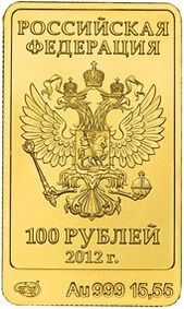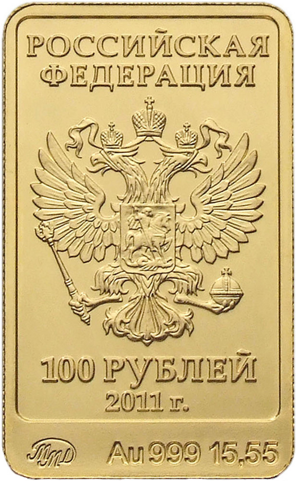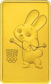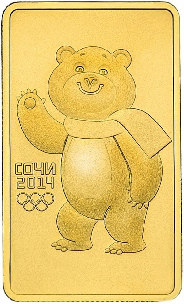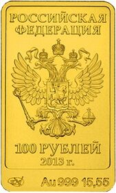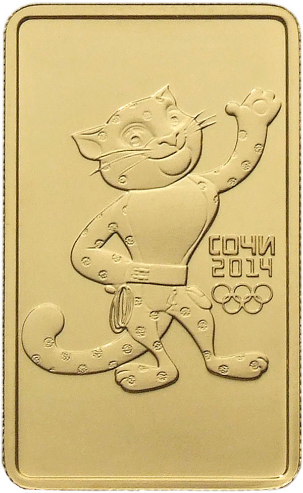 В 2011—2013 годах Банком России были выпущены инвестиционные монеты номиналом 100 рублей, посвящённые зимним Олимпийским играм 2014 г. в городе Сочи. Все эти монеты имеют прямоугольную форму и изготовлены из золота 999-й пробы. Качество монет — АЦ.