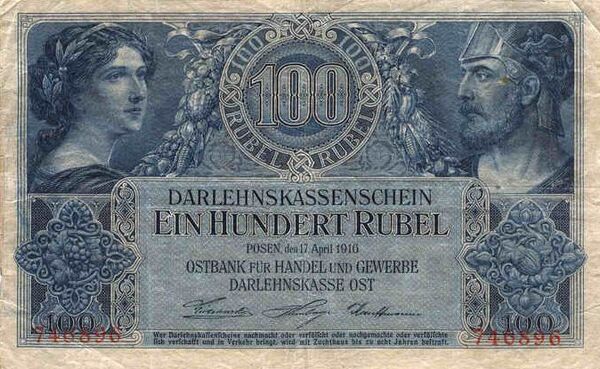 | 145×96 | Коричневый | Номинал цифрами и прописью, пояснительные надписи | Герб России, номинал цифрами и прописью | Числа "100" | 1918 | ||