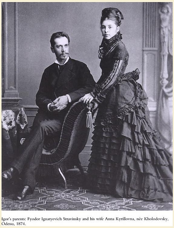 Игорь Стравинский родился в 1882 году на Швейцарской улице в Ораниенбауме, под Петербургом. Его отец, Фёдор Игнатьевич Стравинский — оперный певец, солист Мариинского театра. Его мать, пианистка и певица Анна Кирилловна Холодовская (11.08.1854 — 7.06.1939), была постоянным концертмейстером на концертах мужа. В доме Стравинских в Петербурге принимали музыкантов, артистов, писателей, в числе которых был и Ф. М. Достоевский.