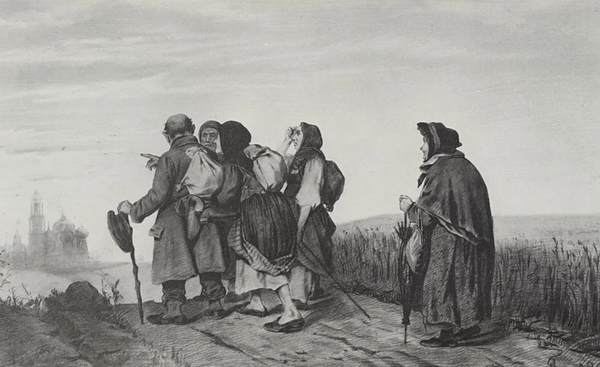 Старый странник с котомкой на плечах и с палкой в руке — характерный персонаж российского общества после отмены крепостного права. В это время голод и малоземелье заставляли крестьян из деревни в город в поисках работы. Особенно много среди таких людей было бывших дворовых людей, не имевших права претендовать на выкуп участка земли у своего бывшего хозяина. Алексей Леонов отмечал, что судьба их привлекала внимание многих передовых людей второй половины XIX века. Русский писатель Иван Тургенев, проживавший в то время в Париже, в одном из писем своему другу Ивану Борисову, относящемся к 22 февраля 1863 года, с беспокойством задавал вопрос: «…что сталось с дворовыми…?»[6].