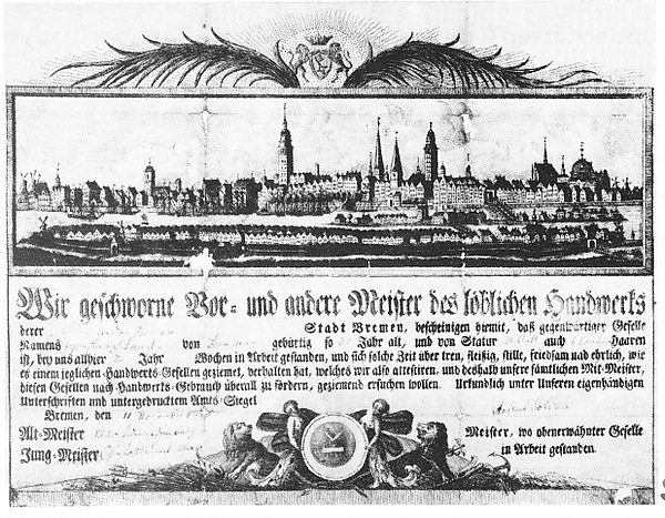 В народных сказках, собранных и обработанных братьями Гримм, нередко фигурируют странствующие подмастерья, например, «Столик-накройся, золотой осёл и дубинка из мешка», «Храбрый портняжка» и так далее. По ходу истории отрабатывались документально закрепленные правила, согласно которым подмастерье обязан перед началом странствия обратиться к ремесленнику-профессионалу, у которого есть право обучать конкретному ремеслу — каменщика, плотника, гончара, скорняка, портного и так далее. Допускается обучение у нескольких профессионалов, поэтому подмастерья и переходят из одного города в другой, за что их часто называют «скитальцами». Они должны иметь разрешение местной Палаты промышленности и ремесел. С 1730 по 1820 год подмастерьям разных гильдий после завершения периода их успешной работы (под руководством мастера) выдавался сертификат в виде гравюры с подписью и с печатью. Позднее вместо этого были введены рабочие книжки для внесения в них сроков обучения у мастеров, наименований выполненных заказов и прочих важных дополнений, включая сертификат. Оплата работ «скитальцев» осуществляется по установленному тарифу, с учётом социального и медицинского страхования. Только предъявляя рабочую книжку, подмастерье может обращаться за финансовой поддержкой[1].