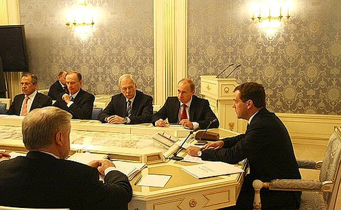 О необходимости принятия нового стратегического документа президент Д. А. Медведев впервые заявил в сентябре 2008 г. на заседании Госсовета, посвящённом вооружённому конфликту в Южной Осетии. Работа над его текстом велась межведомственной рабочей группой в рамках Межведомственной комиссии Совета Безопасности Российской Федерации по проблемам стратегического планирования. Документ был согласован на совещании президента с постоянными членами Совета Безопасности Российской Федерации 24 апреля 2009 г.
