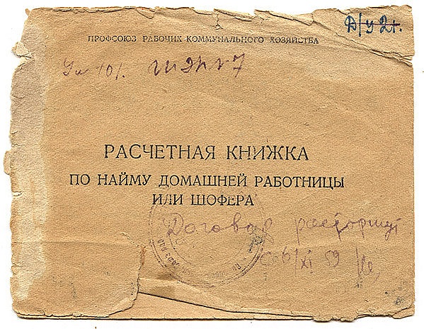 - Расчётная книга по найму домработницы или шофёра, 50-е. 13Dead Crazy System. Виталий (13_dead); LiveJournal, Inc. (22 апреля 2010). Дата обращения: 14 июля 2010. Архивировано 1 мая 2012 года.
