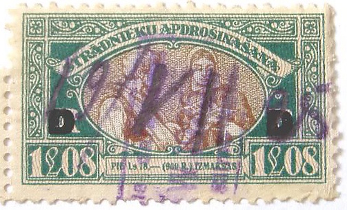 В Латвии по распоряжению Правительства в декабре 1923 года были введены страховые марки, наклеиваемые в специальные книжки, которые были обязаны иметь работники, занятые на временных и случайных работах. На марках были изображены лежащий больной и медицинская сестра, поддерживающая его голову или рабочий, правая рука которого в повязке, показывающий женщине страховую книжку. На марках был текст: латыш. «Stradnieku apdrosinasana» («Страхование работников»). Первоначально были изданы знаки страховой уплаты для региона Риги (с буквой «R»), позже — знаки единого образца с таким же рисунком, отличавшихся надпечатками аббревиатур, для ряда волостей. Твёрдого порядка в использовании марок с локальными надпечатками не было. Допускалось применение знаков других регионов[2].