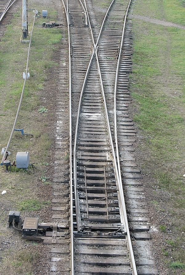 - одиночные стрелочные переводы, в которых один путь разделяется на два.