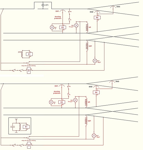 Если трамваю надо проследовать направо — водитель проводит его под сериесными воздушными контактами накатом, с выключенными двигателями. Так как сериесная цепь оказывается разомкнутой — стрелка остаётся в правом положении.