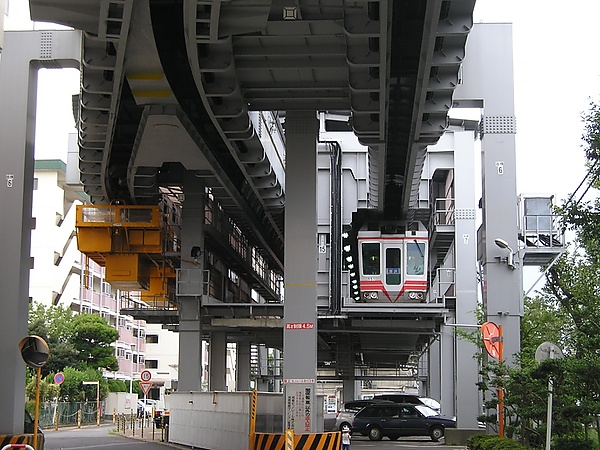 Также в монорельсе применяется переворотный тип стрелки, когда два направления закреплены с разных сторон бруса. Для перевода стрелки механизм переворачивает брус нужной стороной.
