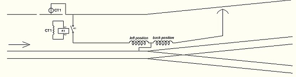 После проезда стрелочного перевода токосьемник трамвая, повернувшего по стрелке налево, замыкает шунтовой воздушный контакт, образуется электрическая цепь «контактный провод — токосъемник трамвайного вагона — шунтовой контакт — шунтовой привод — рельсы», в результате чего шунтовой соленоид возвращает стрелку в исходное положение (для движения направо).[6]