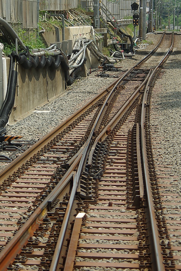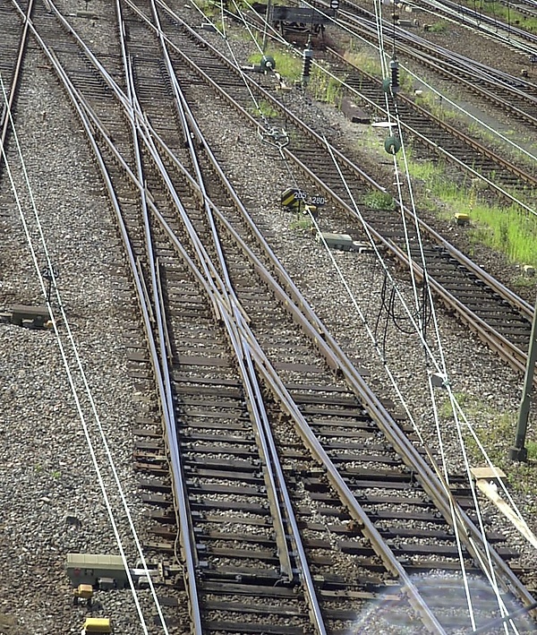 - Корневые стыки — стыки в корнях остряков. Их гайки не затягивают до упора, чтобы обеспечить подвижность остряков.
