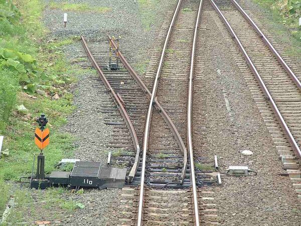 - В автоматических стрелках указатели не ставятся, направление, в котором переведена такая стрелка, определяется по положению остряков.
