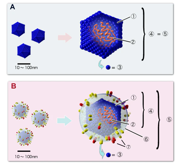 Вирусы обладают разнообразными формами и размерами. Зрелая вирусная частица — вирион — состоит из нуклеиновой кислоты и белковой оболочки — капсида. Некоторые вирусы имеют дополнительную липидную оболочку — суперкапсид.