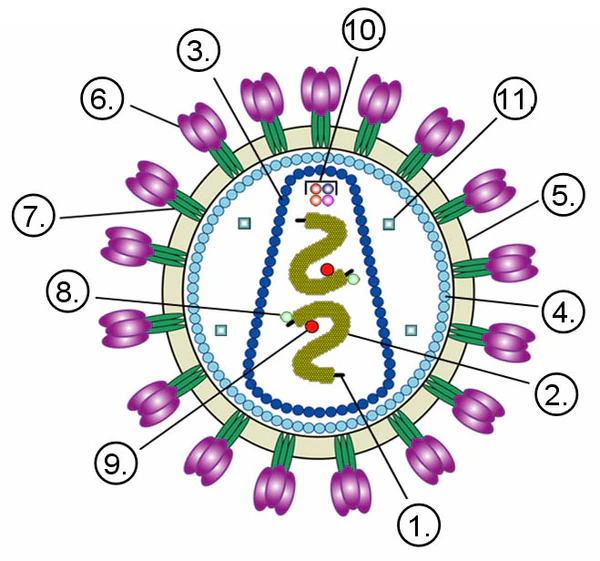 Ретровирусы — это РНК-содержащие вирусы, способные с помощью фермента обратной транскриптазы синтезировать ДНК на основе своей РНК. Полученная ДНК интегрируется в геном клетки-хозяина. Структура ретровирусов включает: