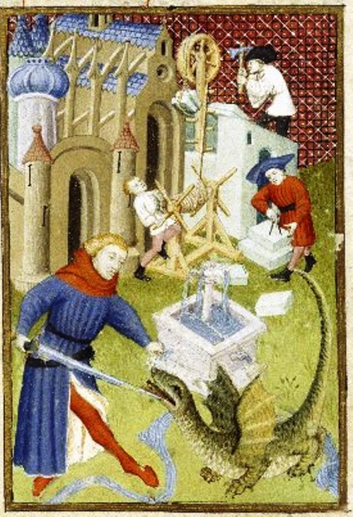 На суше камни часто перевозили с помощью волов; для некоторых перевозок требовалось до двадцати упряжек по два вола в каждой. Волы сыграли особенно важную роль в строительстве собора в Лаоне, перенеся все камни на вершину крутого холма. В честь их труда на башнях собора были установлены статуи шестнадцати волов[12].