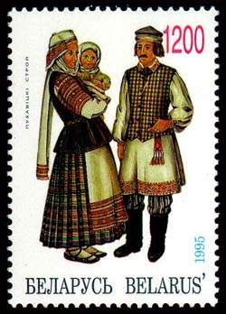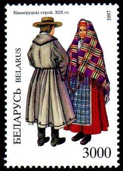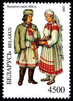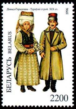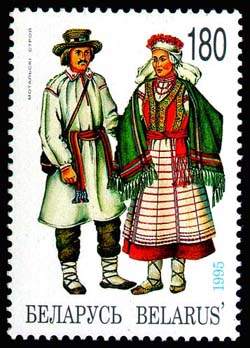 - Описание белорусского костюма с изображениями различных строев (англ.)