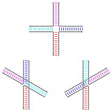 Из таких мотивов наиболее часто используется комплекс двойного кроссинговера (DX), который содержит два соединения Холлидея, расположенных близко друг к другу, в результате чего образуется жёсткая структура, которая может самостоятельно собираться в ряды более высокого порядка. В молекуле DX соединения Холлидея ориентированы так, что их двуцепочечные участки располагаются бок о бок, а не под более предпочтительным углом 60°. Комплекс можно спроектировать таким образом, чтобы соединения располагались в параллельной или антипараллельной ориентации, однако на практике антипараллельная ориентация более удобна, и параллельная используется редко[20][21].