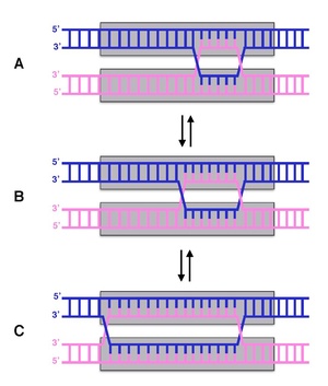 Если в соединении Холлидея происходит одноцепочечный разрыв, то точка соединения принимает перпендикулярную ориентацию и образуется форма со стэкингом (см. рис.)[2].