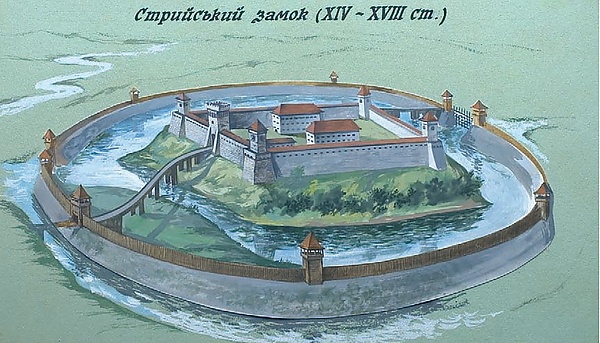 Стрый впервые упоминается в 1385 году. В 1431 году получил магдебургское право. На его развитие полезно повлияло географическое расположение на перекрёстке важнейшего пути через Карпаты (Львов-Мукачево) и широтного — на Предкарпатье. В городе был большой оборонительный замок (разобран в австрийский период).