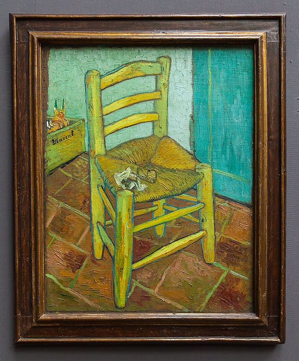 - «Стул Винсента с трубкой», находящийся в Лондонской национальной галерее, написан Ван Гогом в последней четверти 1888 года в Арле в паре с «Креслом Гогена».