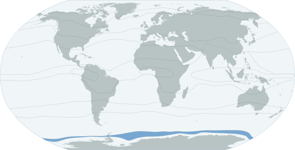 Над океанами южного полушария к югу от 60˚ ю. ш. до побережья Антарктиды субполярный климат характеризуется весьма однородным распределением температуры летом, когда температура на большей части акватории равна нулю. Но зимой она быстро убывает и достигает у побережья −20˚С и ниже. В этих широтах чаще всего проходят центры циклонов. Поэтому облачность здесь очень велика, как и повторяемость осадков и туманов. Преобладающие западные ветры вблизи материка сменяются восточными.