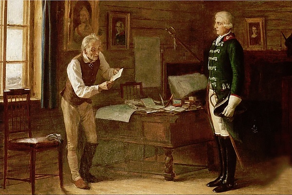 После смерти 6 ноября 1796 года Екатерины II на престол вступил Павел I, сторонник прусской военной системы Фридриха Великого, в соответствии с которой он стал реформировать русскую армию. Были введены новая форма одежды, новый воинский устав. Главное внимание уделялось муштре войск, смотрам и парадам. Сторонник «просвещённой монархии», создавший свою систему организации и снабжения войск и с успехом её применявший, Суворов выступал против насаждения императором Павлом I прусских палочных порядков в армии, что вызвало враждебное отношение к нему придворных кругов. Вопреки указаниям Павла I, Суворов продолжал воспитывать солдат по-своему. Он говорил: «Русские прусских всегда бивали, что ж тут перенять?», «Пудра не порох, букля не пушка, коса не тесак, и я не немец, а природный русак». Эти обстоятельства вызвали раздражение и гнев императора, и 6 февраля 1797 года Суворов был уволен в отставку без права ношения мундира и в конце марта прибыл в своё имение Губерния у белорусского городка Кобрин. С ним последовали 19 бывших офицеров его штаба, каждому из которых Суворов подарил по небольшой деревне с крестьянами. Павлу I неоднократно докладывали об этих обстоятельствах, но решающую роль сыграл, по свидетельству мемуаристки графини В. Н. Головиной, донос, доставленный императору в самый день коронации 5 апреля. Стремясь выместить какую-то давнюю обиду на своего бывшего начальника, генерал-лейтенант М. П. Румянцев доносил, что Суворов в Кобрине «волнует умы и готовит бунт». Государь распорядился немедленно его оттуда выслать в собственное же имение Кончанское (Боровичский уезд, Новгородская губерния)[51]. 22 апреля чиновник тайной экспедиции Ю. А. Николев внезапно приехал в Кобрин, предъявил именное распоряжение императора и решительно потребовал от графа Суворова собираться, не медля. На следующее утро они выехали и 5 мая прибыли в Кончанское. Передав отставного фельдмаршала под присмотр боровицкого городничего Вындомского, Николев вновь уехал в Кобрин, чтобы арестовать оставшихся там офицеров. Среди них был и адъютант Суворова Фридрих Антинг[52]. Арестованные были посажены в Киевскую крепость, но после двух месяцев дознания отпущены по домам, поскольку никакой вины за ними установить не удалось. Большинство из них вернулось в Кобрин к своим новым деревням[53]. Павел I лично распорядился всем им, в первую очередь Антингу, уехавшему к семье в Санкт-Петербург[53], запретить какие-либо контакты с опальным полководцем[54].