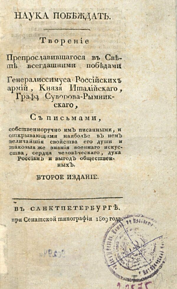 В этот период им написана книга «Наука побеждать» — выдающийся памятник русской военной мысли.