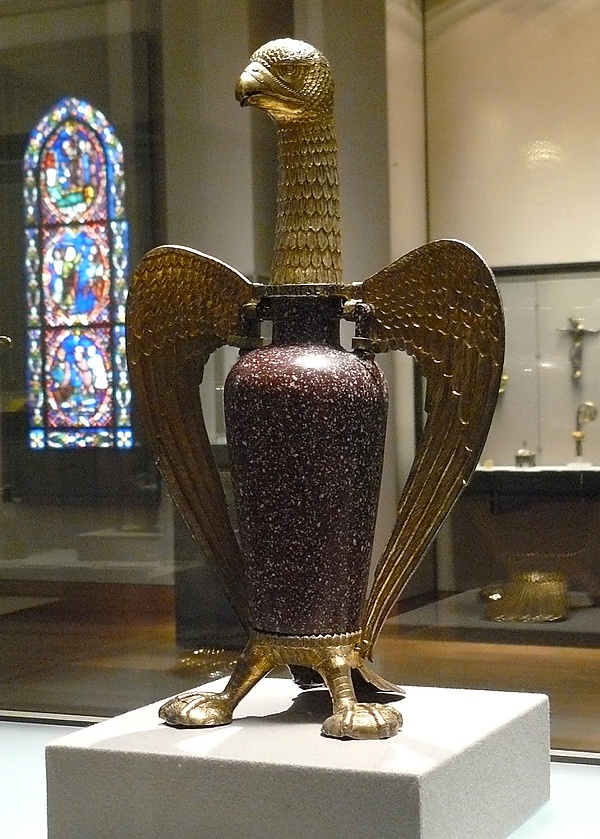 По словам французского медиевиста Жоржа Дюби, сочетая новую технику возведения сводов с архитектурными традициями Нейстрии, Сугерий задумал внутреннее пространство завершённого в 1144 году храма в виде нефа в качестве прообраза единства Вселенной, исходя из разработанной им самим поэтики божественного света[20]. Принадлежа к ордену бенедиктинцев, в представления которых не входили стремление к бедности и полный отказ от мира, осознавая значение монашеской обители как символической вершины мирового мироустройства и основываясь на трактате Дионисия «О небесной иерархии», он намеренно стремился возвысить своё аббатство над другими, подобно тому как монарх превосходит в своём королевстве прочих феодальных владык, для чего соединил традиции Каролингов с эстетикой Бургундии и Аквитании[21]. Священные реликвии, раки с мощами святых, драгоценные сосуды, цветные витражи, украшенный самоцветами семиметровый крест, на который учёный аббат истратил лично, по его собственным словам, «двадцать четыре марки чистого золота», — всё это отныне должно было способствовать не боязливому благоговению, а просвещению верующих, внушая им идею вочеловечивания Бога[22]. Как справедливо отметил Панофски, сызмальства испытывая чувство «сыновней принадлежности» к аббатству Сен-Дени, новатор Сугерий, в отличие от позднейших гуманистов, самоутверждался не «центростремительно», а «центробежно», проецируя на окружающий мир личное Я и отрицая свою идентичность. Вместе с тем, «смиренное тщеславие» его выразилось, в частности, в том, что единственным именем, упомянутым на многочисленных деталях монастырского декора, стало его собственное[23].