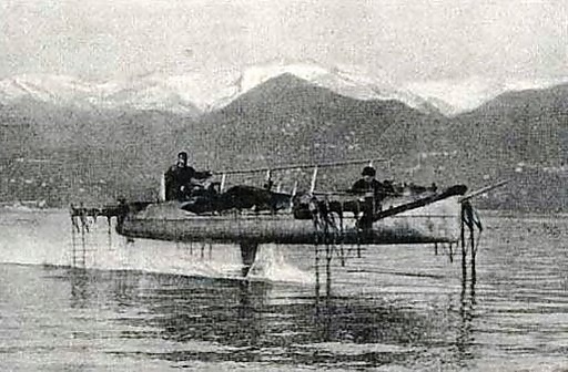Более успешными были опыты итальянского изобретателя Энрико Форланини. Он проводил эксперименты с моделями судов на подводных крыльях с 1898 года. В 1906 году созданное им полноразмерное экспериментальное судно в ходе испытаний на озере Лаго-Мажоре достигло скорости в 68 км/ч (42,5 мили/час). Этот катер имел многоярусные крылья наподобие этажерки.