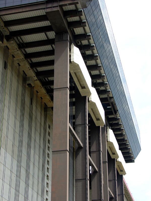 Каждая камера подвешена на 120 несущих тросах, которые переброшены через направляющие шкивы диаметром 4,8 м и связаны с противовесами. Дополнительно по 32 троса управления используются для подъёма и спуска камер. Диаметр каждого троса 85 мм. Масса противовесов подобрана так, чтобы сила натяжения тросов управления не превышала 100 кН.