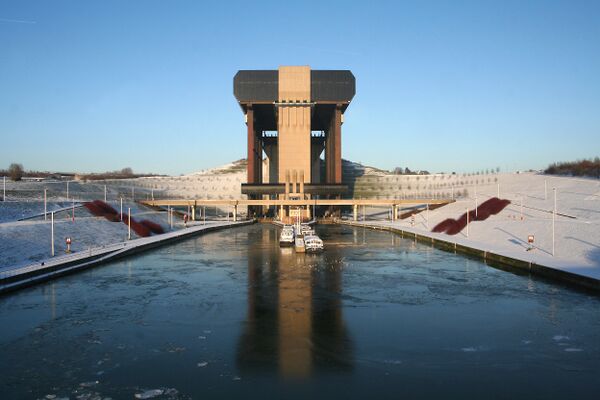 Проект большого судоподъёмника был разработан в рамках программы по модернизации Центрального канала, с целью замены старой системы из двух шлюзов и четырёх 16-метровых судоподъёмников, построенных в 1889—1919 годах.