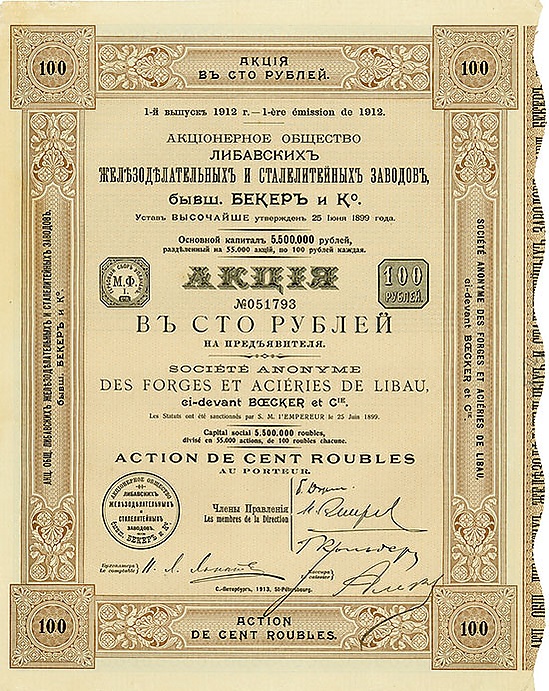 В 1889 году фабрикант В. Беккер (V. Boecker) открыл в Либаве металло-машиностроительный завод «Boecker & Ko». В 1898 году завод перешёл в собственность одноимённого акционерного общества[3].