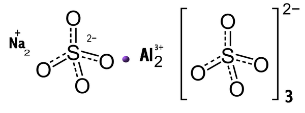 Сульфат алюминия-натрия — белые гигроскопичные кристаллы, хорошо растворимые в воде.
