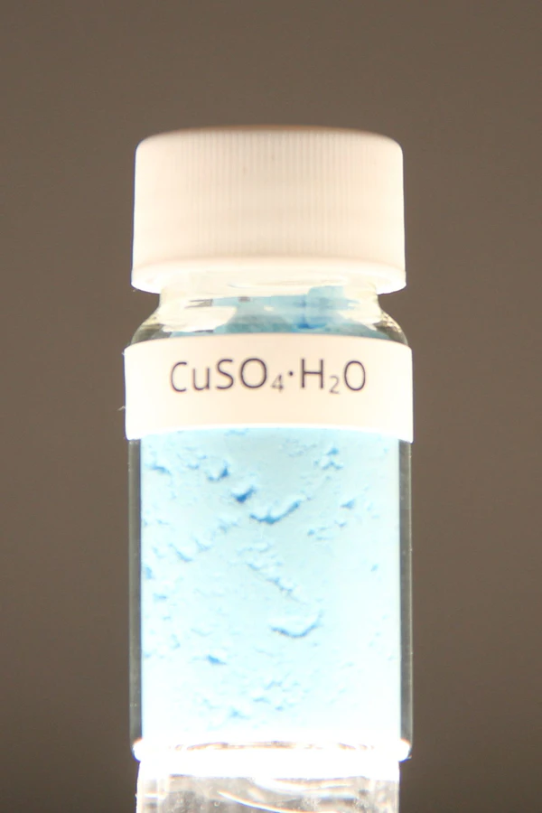 Сульфа́т меди(II) (медь(II) серноки́слая, традиционное название кристаллогидрата — ме́дный купоро́с) — неорганическое соединение, медная соль серной кислоты с формулой CuSO4. Представляет из себя белый порошок или прозрачные негигроскопичные кристаллогидраты оттенков синего цвета. Используется в химической и деревообрабатывающей промышленности, в сельском хозяйстве, гальванотехнике, фотографии[4]. В составе бордоской жидкости (средстве от парши, монилиоза, коккомикоза и различных видов пятнистостей садовых культур) медный купорос является действующим веществом[5].