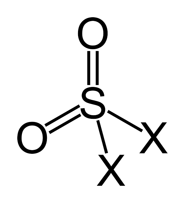 В органической химии, эта группа обнаруживается в сульфонах (RSO2R') и сульфонилгалогенидах (RSO2X), где она называется сульфонильной группой.