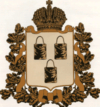 Герб имеет следующее описание: «В серебряном поле три чёрные сумы с их перевязами и золотыми пуговицами, показывающие именование сего города»[4].