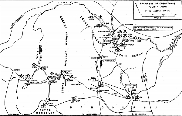 | Итог | Захват северной и северо-восточной части Маньчжурии войсками СССР | ||