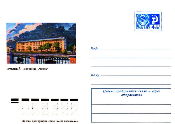 - В 1974 году вышел ещё один конверт с изображением набережной Сунжи в Грозном: «Грозный. Гостиница „Чайка“».