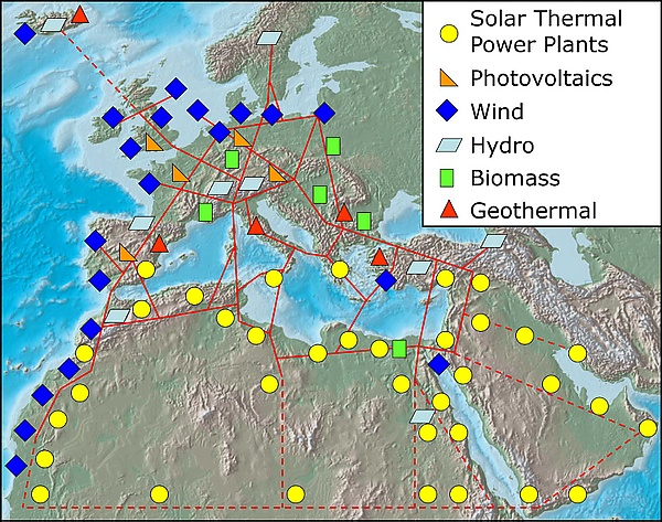 Идея создания международных энергетических сетей для использования удаленных возобновляемых источников энергии не нова. В США в 1930-х годах было предложение построить электросеть от дамб на тихоокеанском северо-западе до потребителей в Южной Калифорнии, но проект был раскритикован и отвергнут. В 1961 году президент США Джон Кеннеди поручил реализовать масштабный проект с использованием новой шведской технологии HVDC. Проект был реализован в тесном сотрудничестве General Electric со шведской ASEA и получил название Pacific DC Intertie.