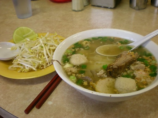 - Хутьеу (вьетн. Hủ tiếu, тьы-ном 粿條) — суп с бань ху тьеу (вьетн. bánh hủ tiếu) и яичной лапшой. Это блюдо было интродуцировано жителями Чаочжоу (народ хоа).