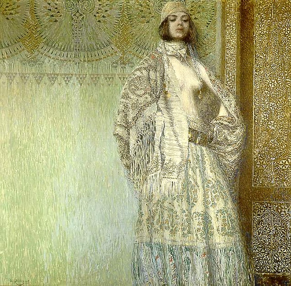 | «Выход Крестного хода из Эчмиадзинского собора», 1895 год | «Портрет Мкртича Хримяна», 1909 год | «Семирамида у трупа Ара Прекрасного», 1899 год | «Портрет Идельсон», 1913 год |