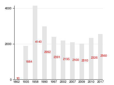 По административным данным на 1 января 1935 года в дачном посёлке Красногвардейского района Сусанино проживали 1884 человека[10].